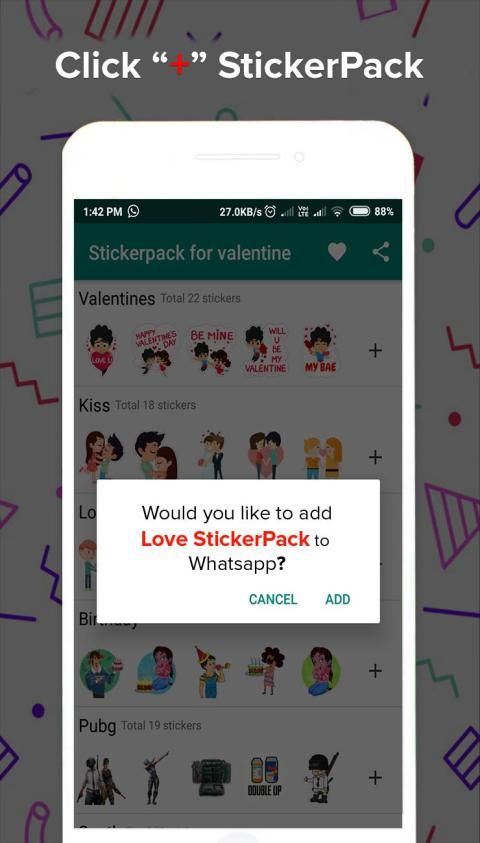 Feature and use of WAStickerpack for valentine app:-