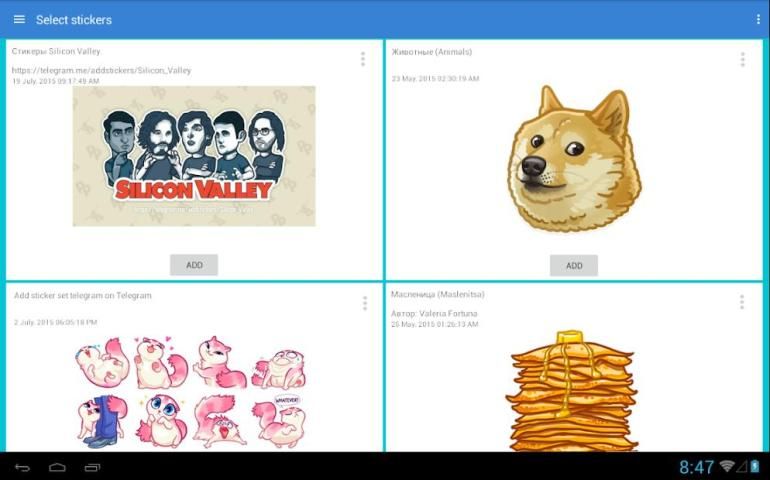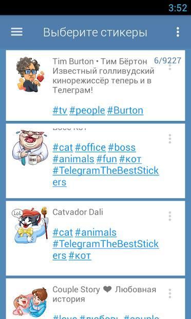 Для добавления стикеров к себе в аккаунт телеграма потребуется любое телеграм-приложение с поддержкой стикеров.