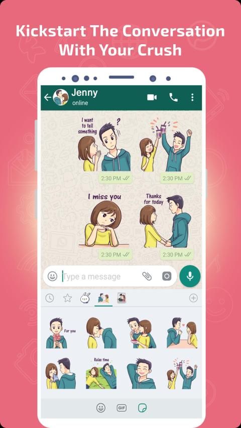 वैलेंटाइन डे स्टिकर, जन्मदिन स्टिकर, शादी की सालगिरह स्टिकर, प्यार स्टिकर, प्यार जोड़े स्टिकर, रोमांटिक स्टिकर, वयस्क स्टिकर, गंदे स्टिकर, खिलवाड़ को आदी स्टिकर, दोस्ती के दिन स्टिकर, और व्हाट्सएप के इमोजी स्टिकर जैसे स्टिकर के साथ अपने विशेष दिन पर अपनी भावनाओं को व्यक्त करें। यहाँ।