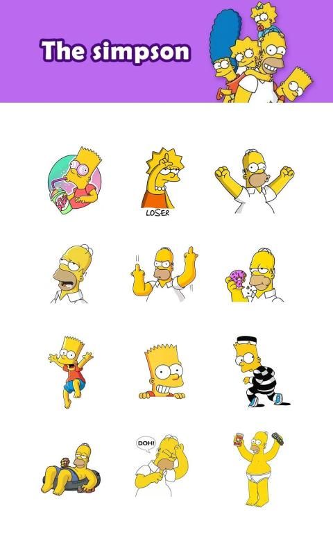 Bartकार्टून एमोजिस: होमर, बार्ट सिम्पसन, पैट्रिक स्टार, स्पिक, रिक और मॉर्टी, बॉबी हिल, हैंक हिल;