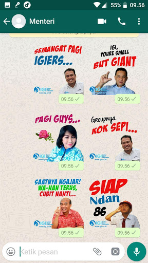 Stiker WhatsApp IGI dengan beberapa kategori stiker tentang pendidikan dan hiburan.