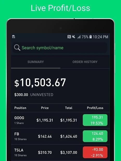 StockMarketSim is a simple, easy, and fun virtual stock market game. You start off with $10,000 and can place unlimited trades, any time of the day. The beautiful design and easy trading flow help users learn the stock market, monitor their stocks, and test various trading strategies.