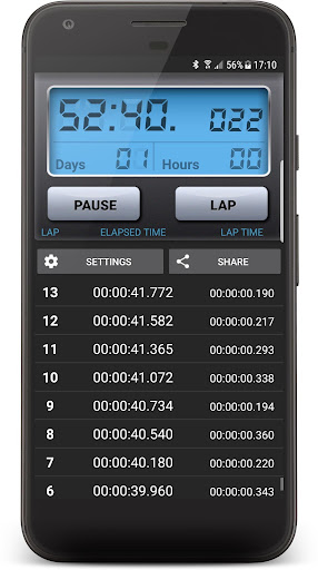 Stopwatch application with an ability to: