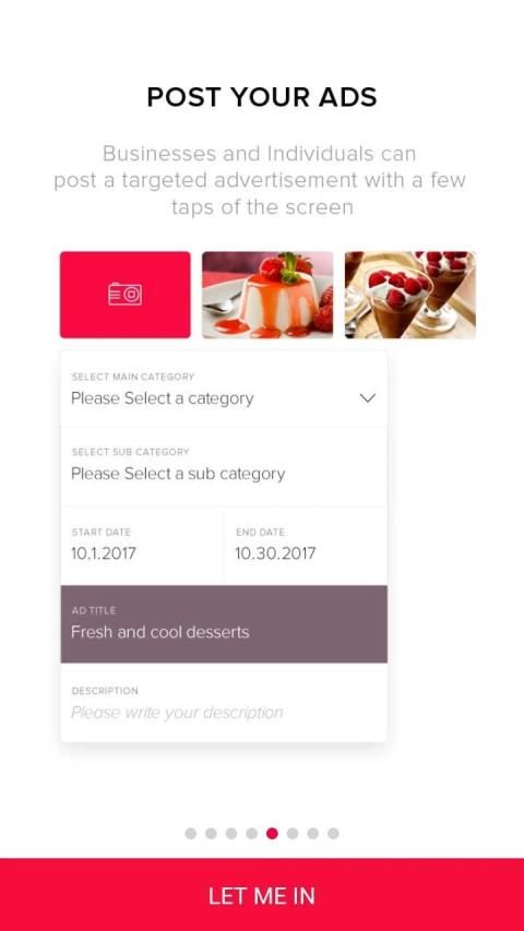 व्यवसायों और व्यक्तियों स्क्रीन है कि उनके घर या व्यापार के आसपास के क्षेत्र में लोगों द्वारा देखा जाएगा के कुछ ही नल के साथ एक लक्षित विज्ञापन पोस्ट कर सकते हैं। सबसे अच्छी बात? यह 100% मुफ़्त है!