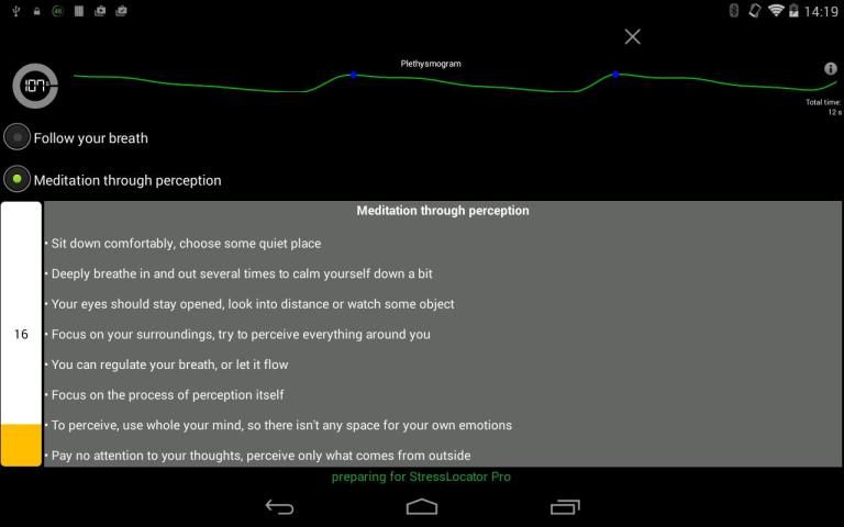 StressLocator - find out more about your mental and physical condition. Decrease your stress. Together, your phone camera and our application can measure and evaluate your pulse waves. It is an ideal tool for planning your activities. You can quickly improve your concentration or relaxation level with biofeedback training, having an immediate check of your progress. The integrated Save Astronauts game will check, how did your concentration improve.