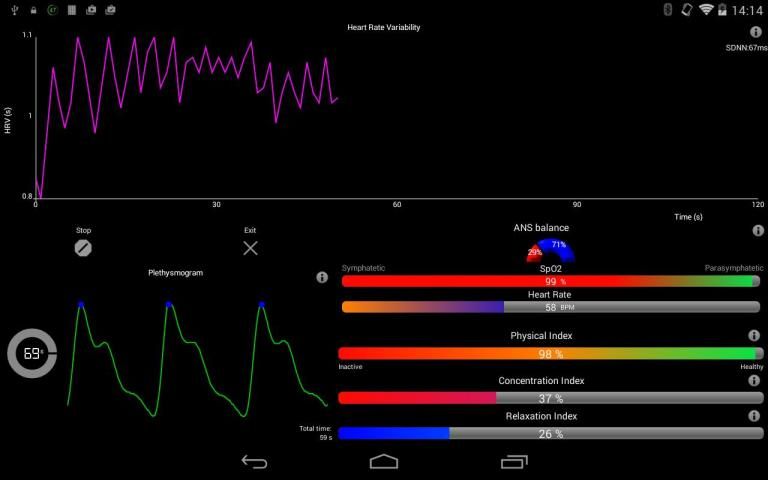 Quick results, easy to use, even the free version has many useful functions. Biofeedback training with breathing exercises will help you to reach concentrated or relaxed state. You have an immediate overview of your progress. The data interpretation is based on deep research, study and analysis of known work on this field.