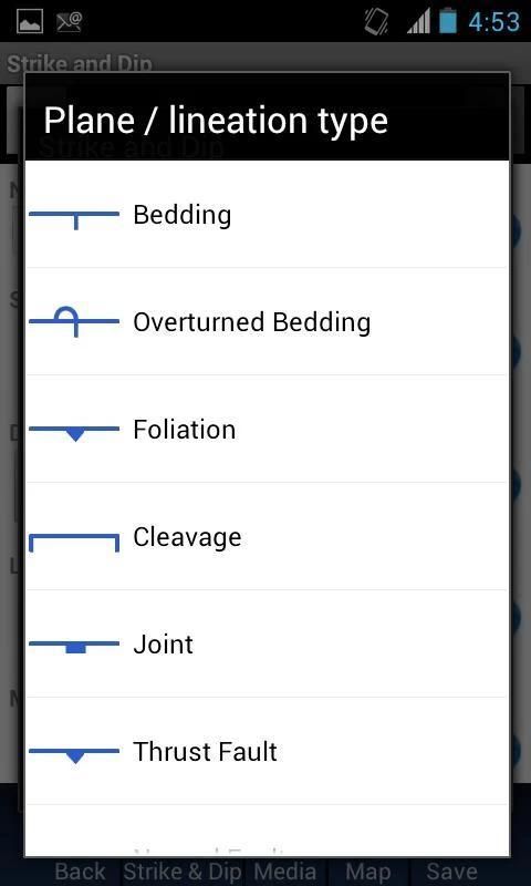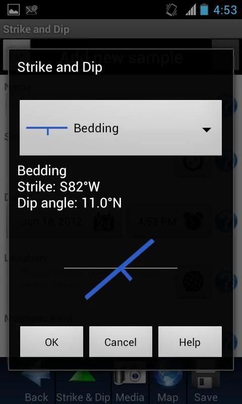 हमारी हड़ताल और डुबकी आवेदन आप हड़ताल का निर्धारण और एक क्लिक के साथ तलीय और रैखिक सुविधाओं की डुबकी के लिए अनुमति अनिवार्य रूप से एक Brunton कम्पास में अपने स्मार्टफोन या टैबलेट बदल जाता है. हड़ताल और डुबकी आवेदन भी हमारे भूविज्ञान नमूना कलेक्टर आवेदन के भीतर एक उपकरण के रूप में कार्य करता है, लेकिन हम भी हमारे भूविज्ञान आवेदन के बाहर इसका इस्तेमाल करना चाहते हैं कि उन लोगों के लिए एक अलग आवेदन के रूप में यह सक्षम है. इसके अलावा, देशांतर, अक्षांश, ऊंचाई, पता (यदि उपलब्ध हो), और तारीख और समय प्रत्येक पढ़ने के लिए एकत्र होते हैं. चुंबकीय क्षेत्र डेटा भी दर्ज किया जा सकता है. खनिज, व्यक्तिगत संरचनाओं, रॉक बनावट, संरचना, आदि की छवियाँ भी वीडियो और / या मामले में outcrops के बारे में अतिरिक्त जानकारी प्रलेखित करने की आवश्यकता है ऑडियो के साथ ही लिया जा सकता है. जरूरी या डिफ़ॉल्ट क्षेत्रों (जैसे तापमान और दबाव के रूप में) छिपा हो सकता है अगर हमारे आवेदन के सभी के साथ के रूप में, अतिरिक्त क्षेत्र बनाया जा सकता है. हम यह भी उपयोगकर्ता के लिए दूरी और वस्तुओं या सुविधाओं की ऊंचाई (अधिक जानकारी के लिए हमारी थीओडोलाइट आवेदन के तहत विवरण देखने के लिए) निर्धारित करने के लिए अनुमति देता है कि आवेदन के भीतर एक थीओडोलाइट उपकरण शामिल है. अंत में, हमारे आवेदन आप डेटा इकट्ठा के रूप में आप के क्षेत्र में पथ को ट्रैक करने की अनुमति देता है. आप बाद में संदर्भ के लिए अपने क्षेत्र का काम दस्तावेज़ कर सकते हैं तो पथ हड़ताल और डुबकी जानकारी के साथ एक नक्शे पर शामिल किया जा सकता है.