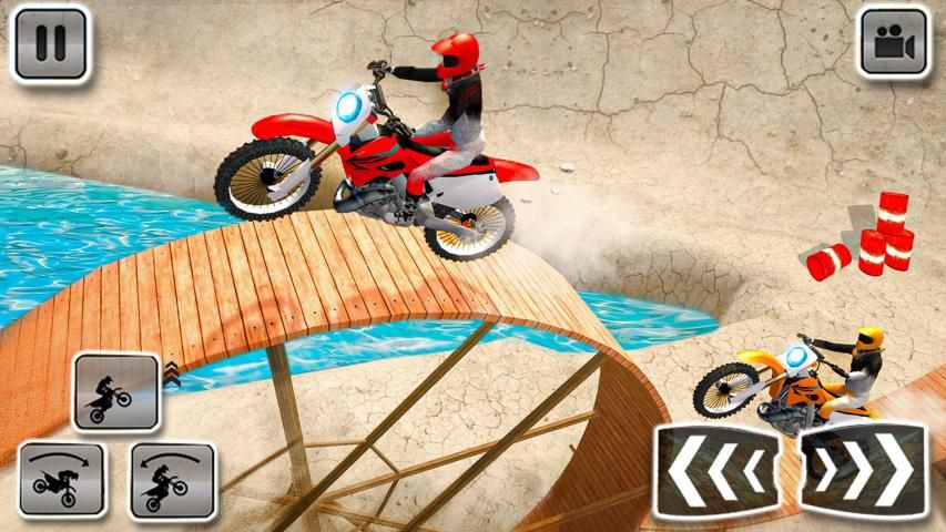 this dirt bike stunts game totally based on stunts riding so during any task you may avoid to hit the hurdles which are placed in bike stunt racing track, be smart and perform your bike stunt safely.in this way you become stunt master as well as trick master. perform your motorcycle driving tricks and complete the impossible tasks on time. We promise you that after playing this stunt master game for at least 3 mints, you will forget about all tricky motorbike stunt games, car stunt games, bike stunt racing games and other water games. Now you are about to become a real trick master of bike games because this game contain real dirt bike stunts.