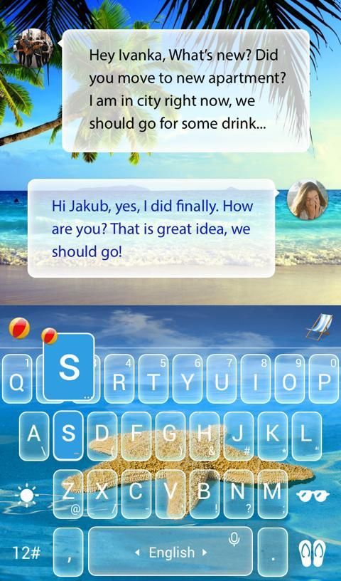 नई मुक्त TouchPal गर्मी की छुट्टी कीबोर्ड विषय -Install ---> अपनी आइकन प्रेस ---> यह TouchPal Emoji कीबोर्ड द्वारा स्वचालित रूप से सक्षम हो जाएगा!