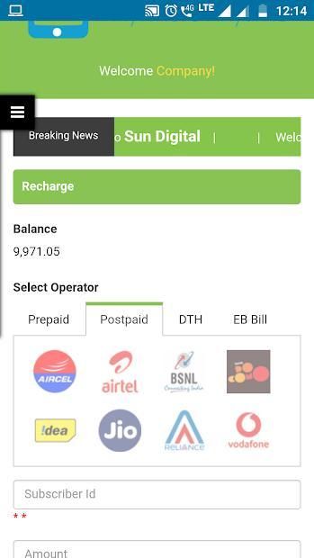 unEc ऑनलाइन रिचार्ज और पोस्टपेड बिल भुगतान साइट। सभी प्रीपेड मोबाइल रिचार्ज, डीटीएच रिचार्ज, डेटा कार्ड रिचार्ज, 2 जी / 3 जी / 4 जी डेटा प्लान टॉप अप और ऑनलाइन बिल भुगतान की ज़रूरतों के लिए एक स्टॉप समाधान। एयरटेल, वोडाफोन, आइडिया, बीएसएनएल, एयरसेल, टाटा डोकोमो सीडीएमए, टाटा डोकोमो जीएसएम, टाटा इंडिकॉम दिल्ली, एमटीएनएल ट्रम्प मुंबई, एमटीएनएल ट्रम्प दिल्ली, एमटीएस, रिलायंस जियो प्राइम, रिलायंस 4 जी एलटीई, रिलायंस जीएसएम, के लिए त्वरित और आसान ऑनलाइन रिचार्ज प्राप्त करें। भारत भर में सभी सर्किलों के लिए टी 24, टेलीनॉर, वीडियोकॉन, मोबाइल।