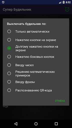 3। आप आपको जागने के लिए निश्चित हैं और केवल एक चमत्कार को सोने के लिए नहीं। दस तक के उदाहरणों या संख्याओं की संख्या में वृद्धि। या आम तौर पर अलार्म को मैन्युअल रूप से डिस्कनेक्ट करने की क्षमता को अक्षम करें, स्वचालित शटडाउन अंतराल सेट करने और संगीत को "आनंद लें" सेट करने तक जब तक आप सपने के बारे में पूरी तरह से भूल जाते हैं।