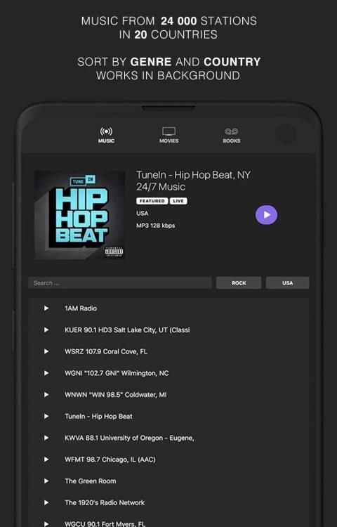 रेडियो स्टेशनों से संगीत सुनें जो इंटरनेट स्ट्रीम प्रसारित करते हैं।