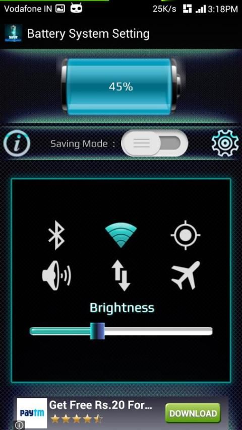 Super Battery Saver has a special battery saving mode option. This mode will extend battery life when device is switched on.