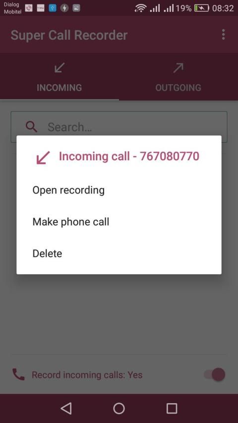 • On/off incoming & outgoing automatic call recording (including calls from private numbers)