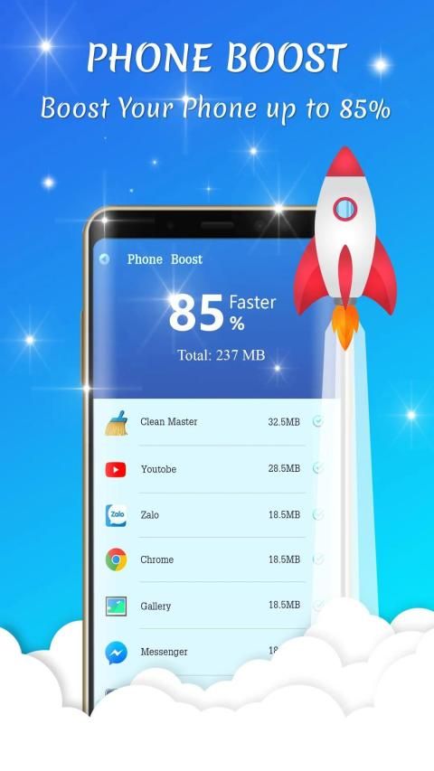 Phone Cleaner scans all junk files, application memory, cache, apk files not needed to remove from your phone. Your memory will be more optimized, the phone will run faster when scanning junk files from the computer.