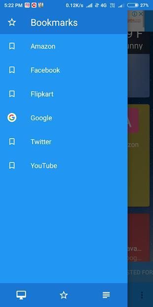 * होम - जो आपको सीधे किसी भी वेबसाइट से होम पेज पर ले जाता है।