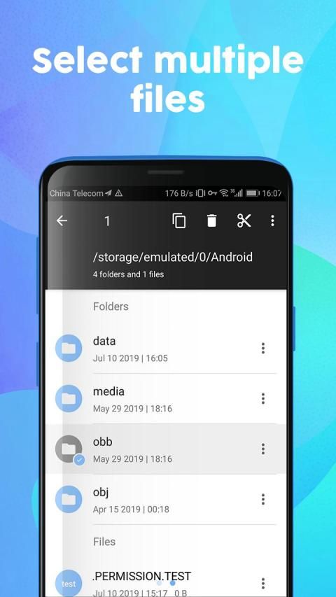 Basic use: With File Manager, you can easily copy, rename, move, delete, share, find, explore, compress, create folders or files, or otherwise organize all your files on any storage.
