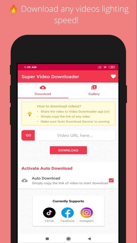 Super hot video download apps auto detects videos by copying link, its a facebook, Instagram & tiktok video downloader app. Fast video download and play it offline.