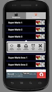 After you install , open this app, and select the list view Super Mario ringtones or Ringtone Free title until the Menu appear. or you can press " play button " to listen first before set it.