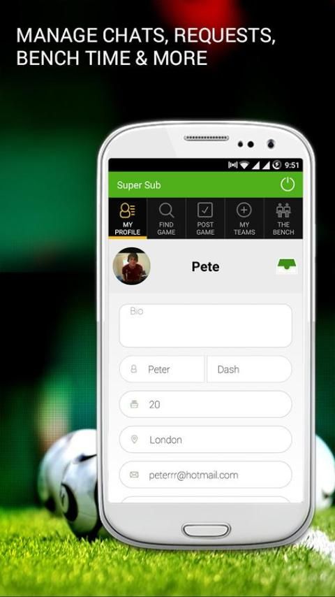 अपने आप को चुनौती और बेंच पर बैठे और आप एक खेल के लिए उपलब्ध हैं जब भी टीमों की मदद से आप में एक "सुपर उप" हो सकता है कि कितने खेल को देखने के! आप खेलते हैं और टीमों की खोज और चैट के माध्यम से संपर्क करने की अनुमति के लिए उपलब्ध हैं, जो समय और दिन में बेंच पर बैठो।