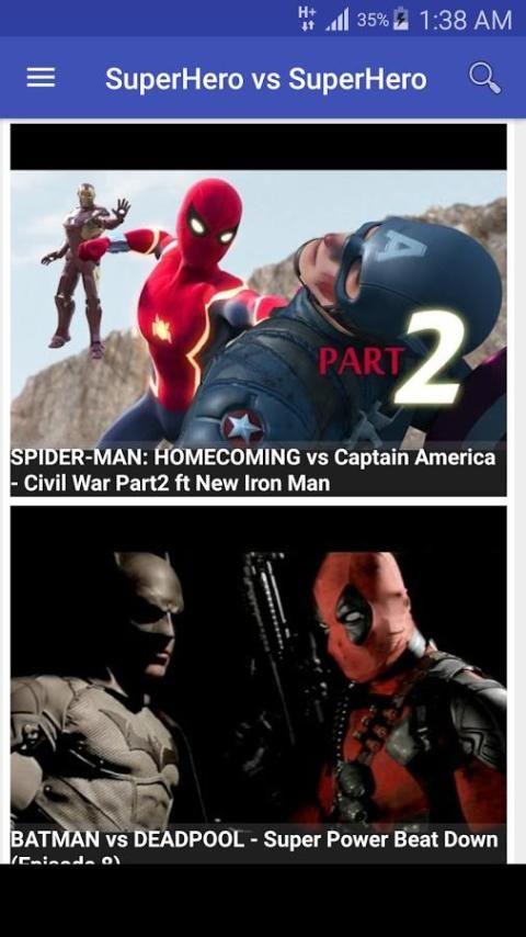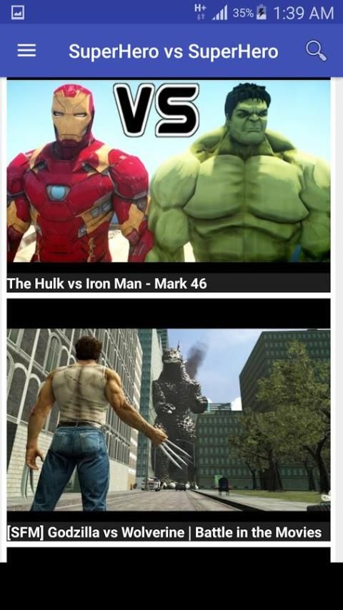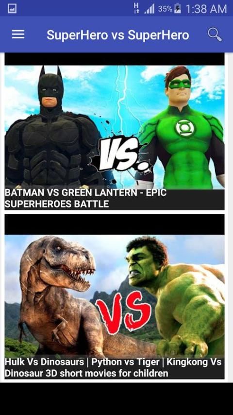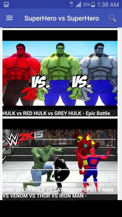 सुपर हीरो सुपर हीरो बनाम डाउनलोड करें और अन्य सुपरहीरो के साथ कार्रवाई में अपने पसंदीदा सुपर हीरो देखते हैं। इस एप्लिकेशन के लगभग सभी सुपर हीरो सुपर हीरो बनाम combats का संग्रह है। सुपरहीरो के अलावा आप हल्क, सुपरमैन, थोर, आयरनमैन, बैटमैन, कैप्टन अमेरिका, स्पाइडरमैन, Wolverine, और अन्य सुपरहीरो की एक बहुत कुछ मिल जाएगा। फिल्मों, टीवी शो, कार्टून और अन्य स्रोतों से सबसे अच्छा दृश्य इस आवेदन में एकत्र कर रहे हैं।