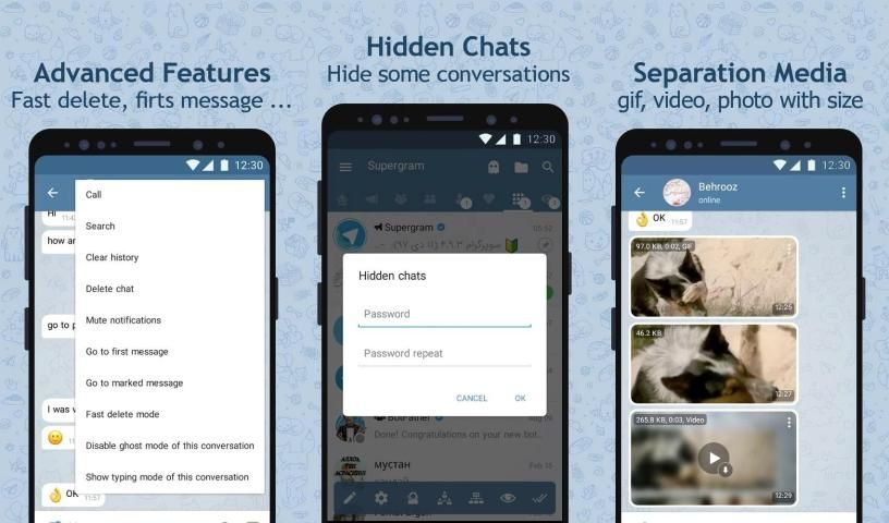- Hiding channels, groups: the possibility to hide chats in an advanced form and the ability to set a password for the hidden chats as numbers or text.