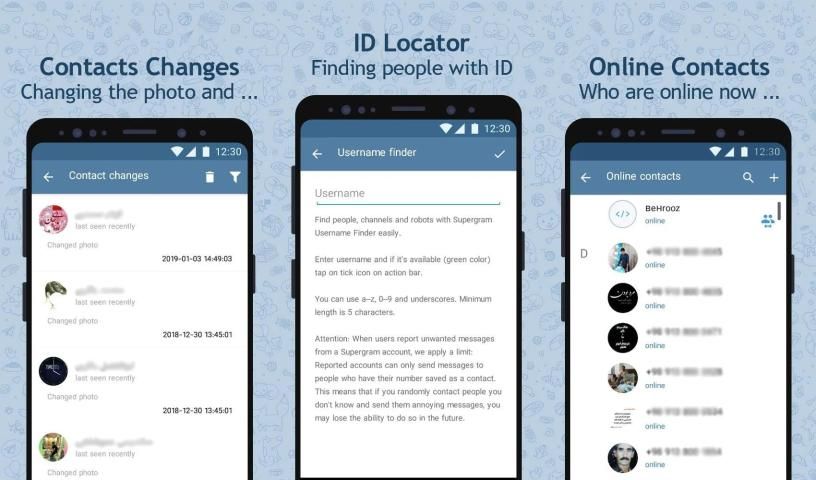 - Advanced specific audience: be aware of being online and offline, change of photo and the name and phone number of the intended audience in the shortest time possible.