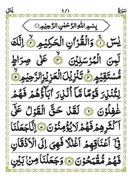 1. सूरह यासीन, जो कुरान का दिल है और इसके साथ जुड़े दिव्य गुण हैं, जो अनगिनत पुरस्कार प्रदान करते हैं