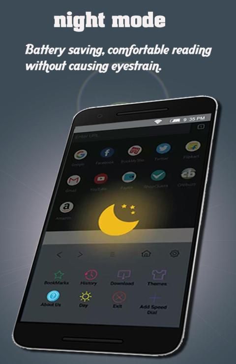 • रात मोड: तुम्हारी आँखों को बचाने के लिए स्क्रीन मंद।