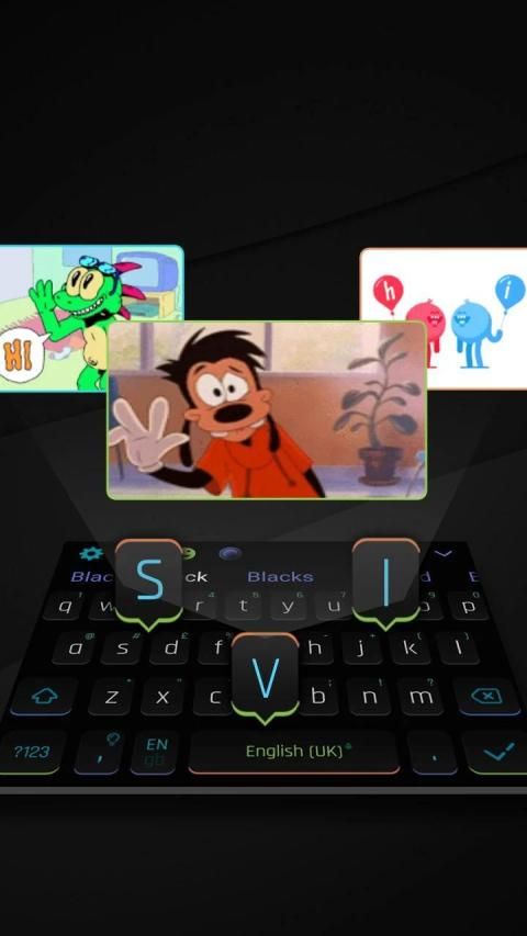 जीआईएफ: इस स्विफ्ट ब्लैक कीबोर्ड थीम में बहुत सारे जीआईएफ हैं जो आपको टाइप करते समय बहुत मजेदार जीआईएफ देंगे।
