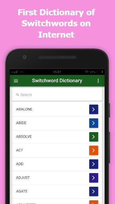 वहाँ एक "वर्णमाला शब्दकोश" के रूप में अच्छी तरह से "500 Switchwords" यह आसान विस्तार से हर switchword को समझने के लिए कर रही है और अधिक से अधिक को कवर है।