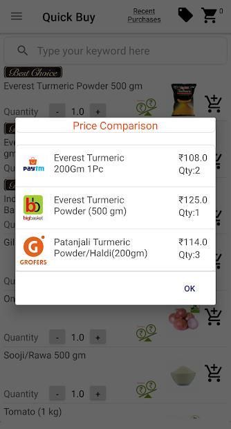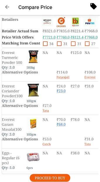 - आप एक ही समय में 5 -6 रीटेलर तक किराने की कीमतों की तुलना करने देता है।