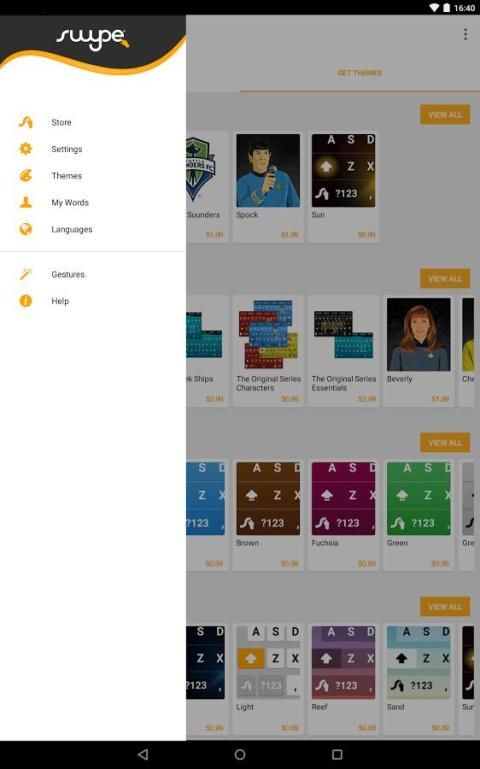 नई: Swype अब एक बिल्कुल नई Swype स्टोर जहां स्टार ट्रेक ™ सहित प्रीमियम विषयों, रंगीन विषयों और कई और अधिक खरीद सकते हैं सुविधाएँ।