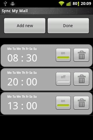 Sync My Mail app allows you to set the time(s) to download your new email from all GMAIL accounts set in your phone.