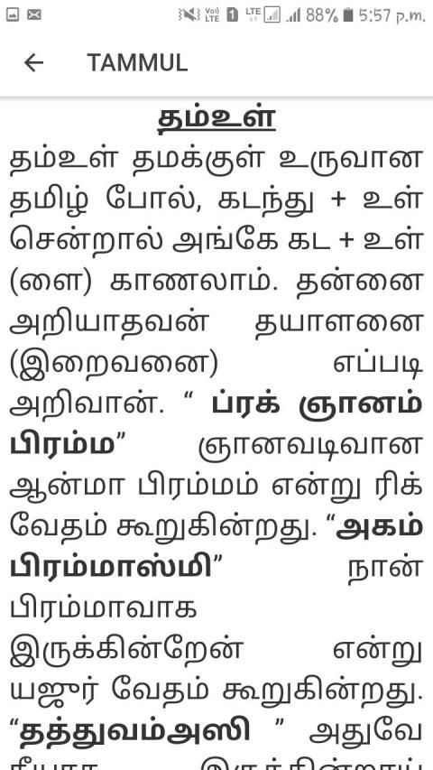 तमिल की तरह, जो अपने भीतर बनते हैं, अगर आप अपने भीतर के अंतर को पार करते हैं तो आप भगवान को देख सकते हैं। अगर कोई खुद को नहीं जानता है तो वह भगवान को कैसे जान सकता है। ऋग्वेद में कहा गया है (प्रज्ञा ज्ञान ब्रह्म) कि आत्मज्ञानी आत्मा ब्रह्म (निर्माता) है। "अगम ब्रह्मसामी" यजुर वेद में कहा गया है कि मैं ब्रह्म (निर्माता) हूं। साम वेद में कहा गया है कि आप "अज़ी" हैं। अथर्ववेद में कहा गया है कि यह आत्मा ब्रह्म (अयम् अथम् ब्रह्म) है।