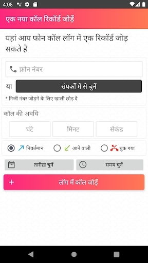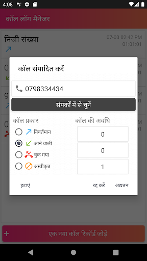 इसके अलावा, आप किसी विशिष्ट समय, तिथि, दौरान और प्रकार के साथ लॉग में कोई भी कॉल जोड़ सकते हैं।