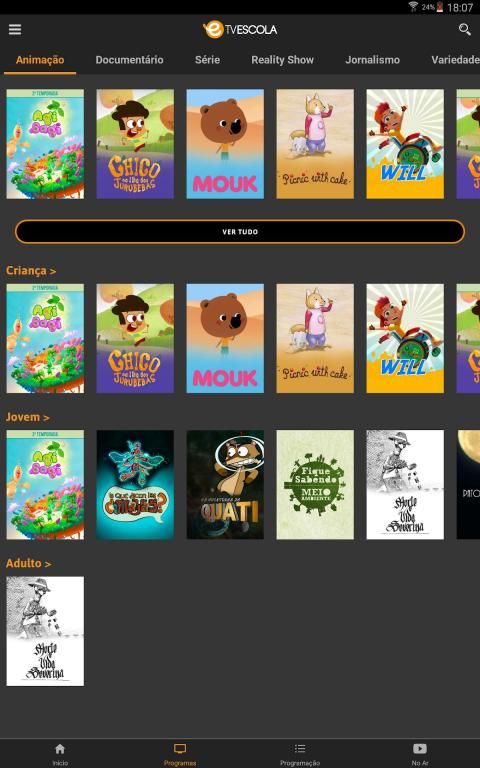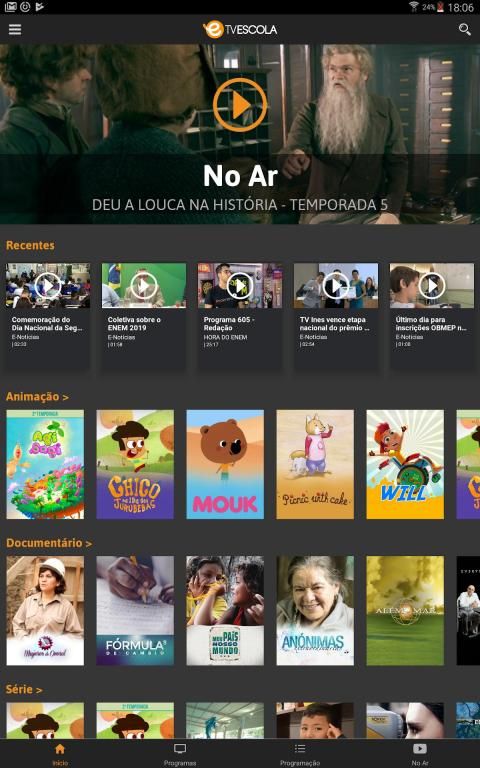 - Todo o acervo digital da TV Escola pode ser acessado por categoria, série ou mais assistidos;