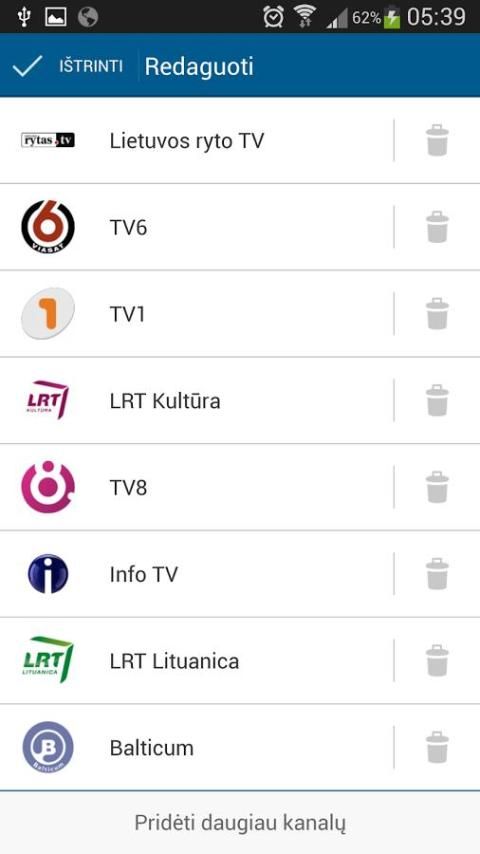Pagrindiniame ekrane matote dabar esančias programas बी tas, kurios बस rodomos है KARTO पुलिस जू. Mėlyna juostelė indikuoja, kiek laiko konkreti laida rodoma eteryje. Kokius kanalus norite matyti šiame ekrane, galite pasirinkti paspaudę "Keisti" viršuje कहलाता "Pridėti daugiau kanalų" apačioje: galėsite kanalus stumdyti aukštyn आईआर žemyn बी pasirinkti naujus kanalus है jūsų televizijos tiekėjo paketo कहलाता पागल teminius kanalų sąrašus. Pasirinkę norimą kanalą galite peržiūrėti जो visos dienos programą šiandienai कहलाता kitoms dienoms. Šiame लेंगे, spustelėję चींटी programos pavadinimo, matysite jos aprašymą बी galėsite nustatyti priminimą, KAD telefonas įspėtų pries prasidedant laidai.
