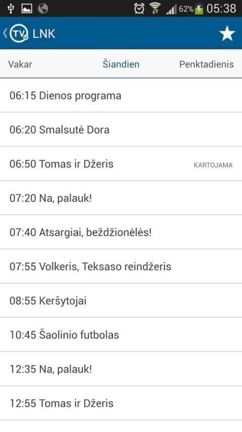 TV.LT programėlė padeda greitai sužinoti, कास rodoma प्रति विषाणु Lietuvoje rodomus televizijos kanalus, Gauti išsamią informaciją apie kiekvieną laidą आईआर telefone nustatyti priminimus, KAD nepraleistumėte svarbių transliacijų. Kokių kanalų programą matyti pirmajame लेंगे, sprendžiate जूस: galite pasirinkti kanalus, kuriuos rodo jūsų televizijos tiekėjas, कहलाता है teminio kategorijų sąrašo.