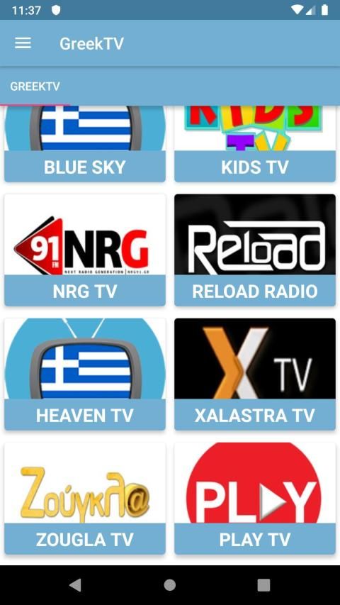 SKAI, ANT1, ALPHA, OPEN BEYOND, START, сс்фсу TV, VOULI, ERT, SMILE TV, RIK SAT, SIGMA, PLUS TV, CAPITAL, EXTRA, CYPRUS CINEMA, MEGA, ACTION 25, ALERT, 4E, ART, FOX TV ZOUGLA TV, NG TV, GROOVY, CINEFIL GR, NETV TORONTO, ARENA, CARTOON TV, SQUEL TV, KIDS TV, JUNIOR TV