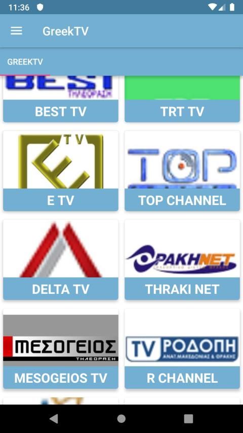 SKAI, ANT1, ALPHA, OPEN BEYOND, START, ещзафсу TV, VOULI, ERT, SMILE TV, RIK SAT, SIGMA, PLUS TV, CAPITAL, EXTRA, CYPRUS CINEMA, MEGA, ACTION 25, ALERT, 4E, ART, FOX TV, ZOUGLA TV, NG TV, GROOVY, CINEFIL GR, NETV TORONTO, ARENA , CARTOON TV, SQUEL TV, KIDS TV, JUNIOR TV