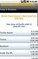 Check today TV programming by channel (like others apps) and by hour(exclusive us) More than 30 channels including abc, abcfam, amc, ane, animal, bbc, bet, bravo, cbs, cinemax, cnbc, cnn, comedy, disney, dsc, e, encore, espn, fnc, food, fox, fx, hbo, hist, ion, life, msnbc, mtv, nbc, nick, oxygn, scifi, showtime, starz...
