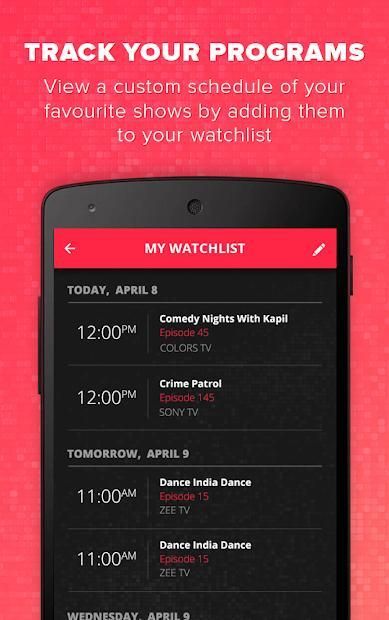 : Puzzled when your favorite programs are airing this week? Add your favorite programs to watch list and follow custom schedules on the go!