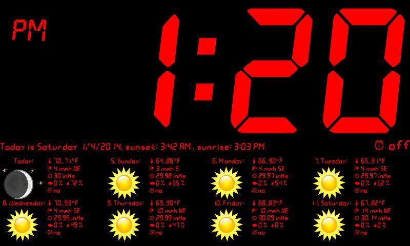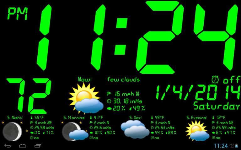 Nowadays wall clock are quite stupid, but price for them is a little bit less that price for tablet PC. And weather station is expensive. So, why do you need to buy stupid clock or expensive weather station when you can take this application and the cheapest table pc or old useless one and get smart clock: