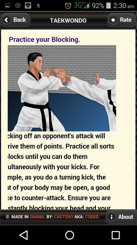 जानें तायक्वोंडो App आप पर कभी भी अपने फोन या गोली पर अपने आप से तायक्वोंडो जानें किसी भी शिक्षक या प्रशिक्षक के बिना मदद करने के लिए बनाया गया एक सॉफ्टवेयर है।