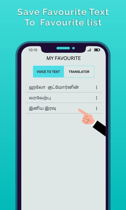 इस ऐप का उपयोग करके आप तमिल में टेक्स्ट लिखने में तेज हो सकते हैं। आपके लिए इसे टाइप करने के लिए बस तमिल में बोलें।