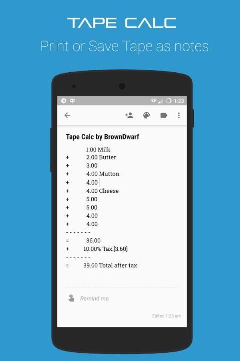 टेप कैल्क आप हर सूची आइटम के खिलाफ टिप्पणी जोड़ने के लिए अनुमति देता है।