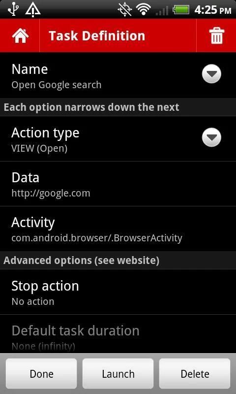टास्क बम आप क्षुधा और स्वचालित रूप से चलाने के लिए कार्रवाई अनुसूची करने की अनुमति देता है (कभी कभी "कार्य अनुसूचक", "काम अनुसूचक", "बैच प्रोसेसर", आदि कहा जाता है) एक स्वचालन अनुप्रयोग है. यह लिनक्स पर क्रॉन आदेश को समारोह में इसी तरह की है और कुछ हद तक एक अलार्म घड़ी की तरह (आप अलार्म सेट और कार्यों दिन में झपकी लेना कर सकते हैं). TaskBomb छोटे और सरल हो सकता है, और आप अपने फोन पर है क्षुधा की शक्ति का लाभ उठाने के लिए करना है.