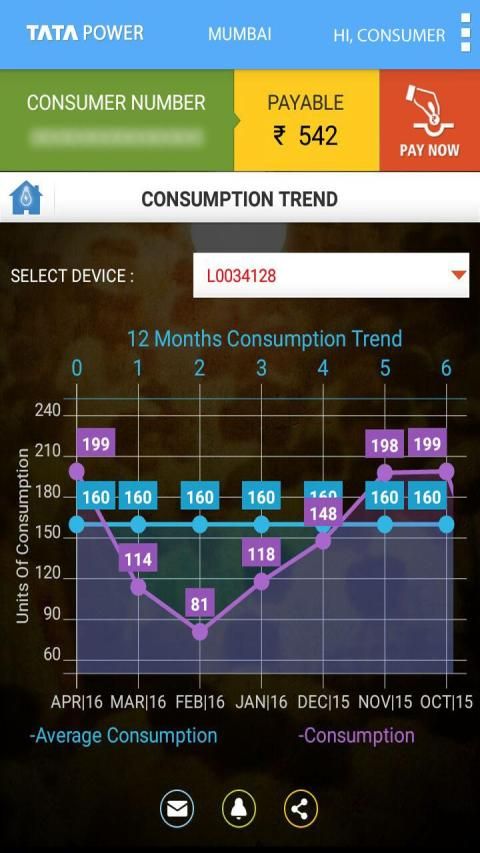 o View Consumption Trend: A graphical representation of your monthly consumption, for the past 12months is available vis-à-vis your average consumption.