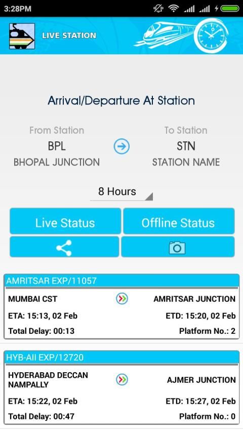 5. लाइव स्टेशन: यह एक अद्वितीय सेवा इस एप्लिकेशन द्वारा प्रदान की जा रही है। यह आप सभी ट्रेनों है कि अगले कई घंटे में एक विशेष स्टेशन पारित करने के लिए जा रहे हैं के बारे में जानकारी देता है। के रूप में जानकारी प्रदान की जा रही आईआरसीटीसी से सीधे है, आप किसी भी शक के बिना इस पर निर्भर कर सकते हैं।